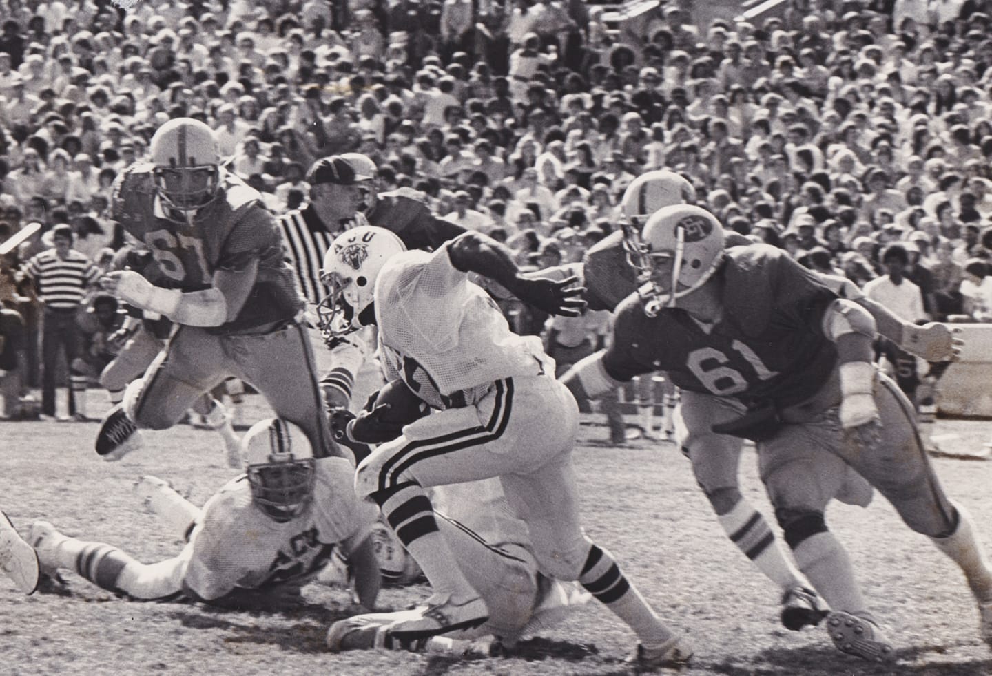 Last week was quite possibly the best effort I have ever seen from a Blue Gang defense. To provide some perspective on this, let me say…. with all the excitement in 2017 surrounding Luis Perez and the aerial circus that was the Lion offense, it was the defense that carried the day, and propelled Commerce to its first national championship in 45 years. I was on the sidelines that night in 1979 when the Blue Gang dealt eventual NAIA national champion Texas A&I their only loss, a 3-0 shutout. In 1980, it was the late Danny Kirk, Jimmy Buster, Curtis Ray, and the rest of the defense that drove Ernest Hawkins’s Lions to within a hair’s breadth of another national championship. As good as that offense was with Wade Wilson, the defense finished 1980 as one of the best in the nation. In a recent poll taken here at The Wire of the all-time Blue Gang roster, almost half of the first team came from this era.